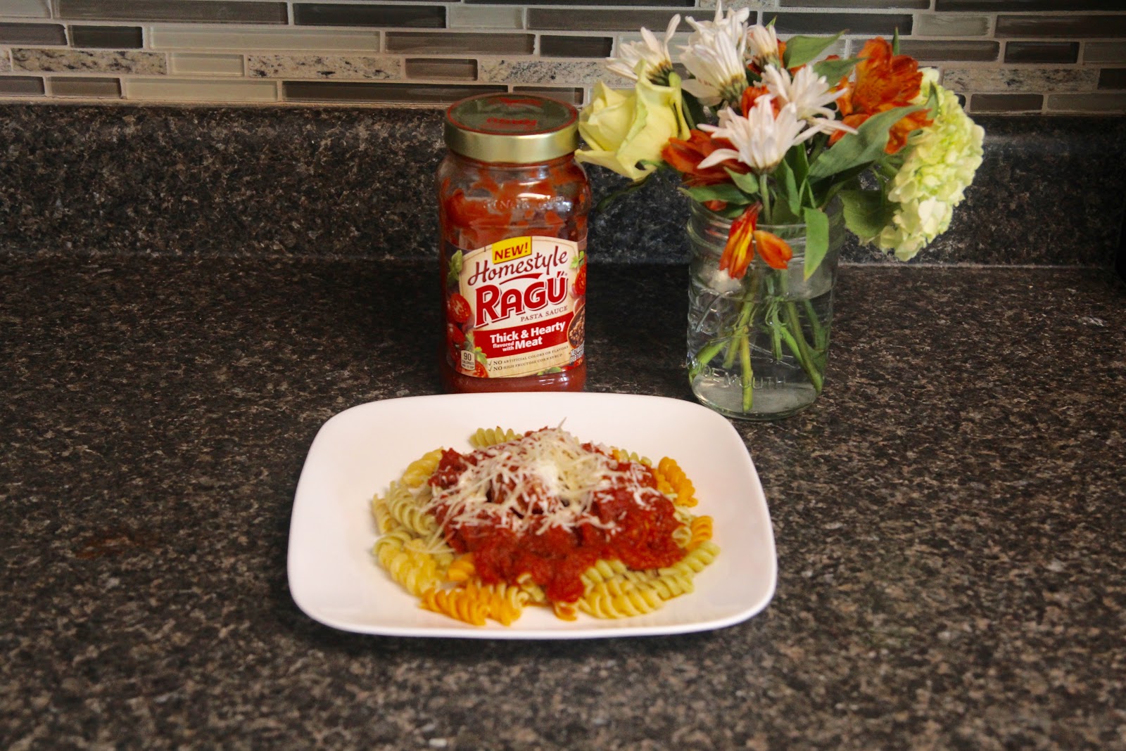 I've struggled to find a good pasta sauce. Some can be too runny. Some can be too chunky to where the boys won't touch it.We'd been purchasing other sauces in the past and trying to add things to make them taste better, but there's no need for us to do that with this sauce.  Ragu just came out with these Homestyle Thick and Hearty sauces that are truly fantastic. I used one in this recipe today. It is the perfect consistency and tastes amazing. It contains no artificial flavors, colors, or high fructose corn syrup, which makes me feel good about feeding it to my family.